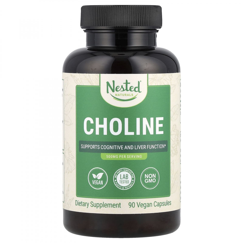 Холин Nested Naturals поддерживает здоровье мозга и печени, обеспечивая оптимальное самочувствие.