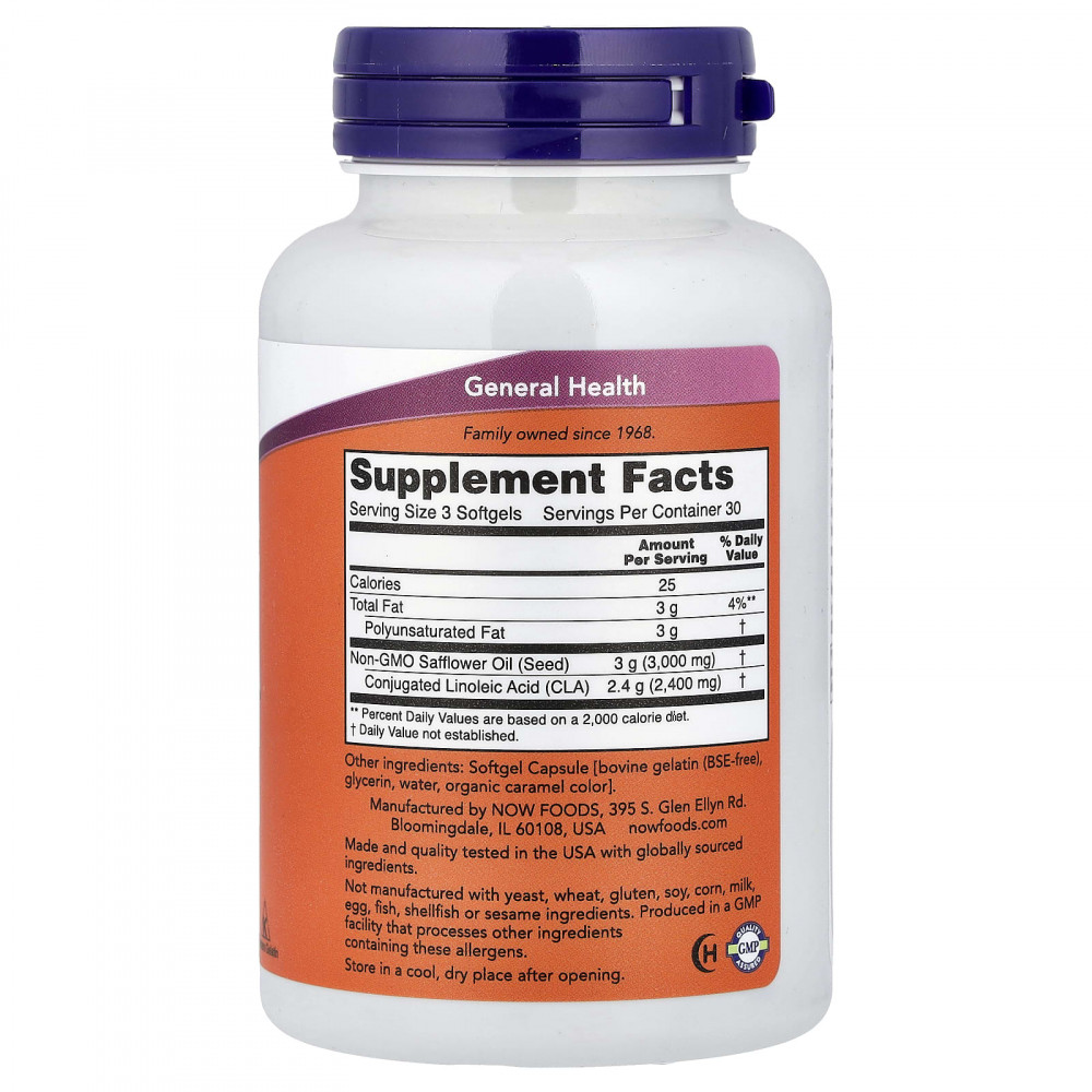КЛК (конъюгированная линолевая кислота) - это класс жирных кислот, вырабатываемых животными, которые естественным образом содержатся в говядине и молочных продуктах. Хотя КЛК играет важную роль во многих клеточных метаболических процессах, люди не могут вырабатывать КЛК и могут получать ее только с пищей. Поскольку КЛК обычно более распространена у пастбищных животных, изменения в методах ведения сельского хозяйства показали, что в наших продуктах содержится меньше КЛК, что снизит ее доступность в современном рационе. Таким образом, рекомендуется использовать добавку с КЛК для получения желаемого уровня КЛК и оптимального эффекта. КЛК от NOW® производится из сафлорового масла без ГМО и содержит 800 мг КЛК в каждой капсуле.