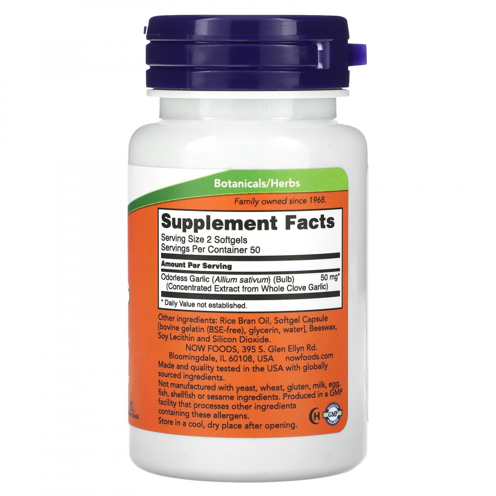 Чеснок без запаха от NOW® извлекается из лука посевного (Allium sativum). Этот экстракт чеснока без запаха высокоочищен и дезодорирован, при этом сохранена питательная ценность чеснока. Чеснок богат природными соединениями серы, аминокислотами и микроэлементами.
