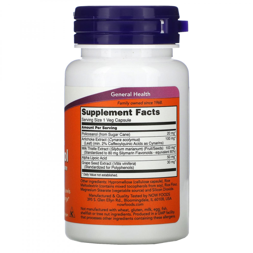 Поликозанол от NOW® представляет собой смесь длинноцепочечных жирных спиртов, полученных из сахарного тростника. LCFA — это натуральные растительные воски. Исследования показывают, что эти растительные воски могут поддерживать уровень холестерина в пределах нормы. Эта формула также включает такие травы, как артишок и расторопша, которые, как известно, поддерживают здоровую работу печени.
