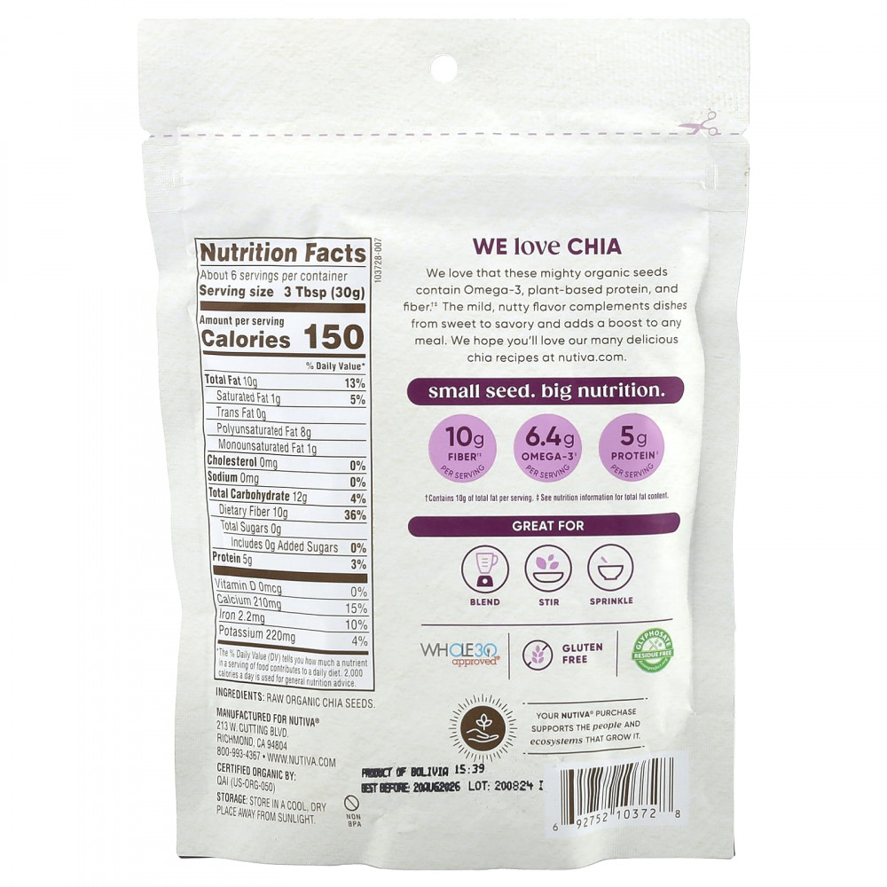 Нам нравится, что эти эффективные органические семена содержат омега-3, растительный белок, и клетчатку†‡. Мягкий ореховый вкус прекрасно дополняет блюда, от сладких до пикантных, и придает им пикантность.