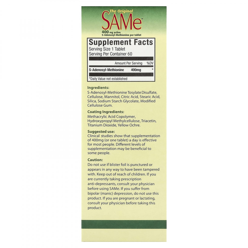 Каждая таблетка NutraLife™ SAMe™ содержит 800 мг дисульфата тозилата SAMe, которые содержат 400 мг активного ингредиента SAMe (S-аденозилметионина).
