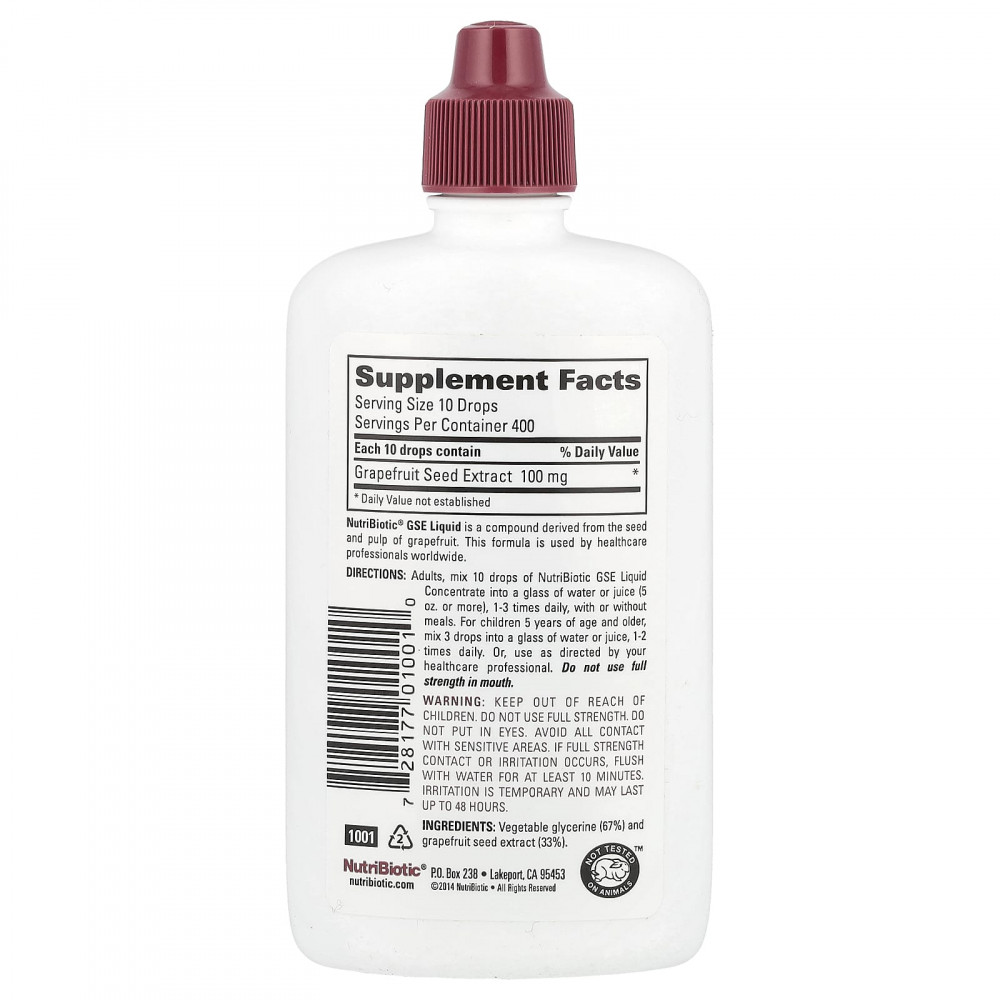 Жидкий концентрат NutriBiotic GSE имеет натуральный состав, полученный из семян и мякоти грейпфрута. Эта формула используется специалистами в сфере здравоохранения во всем мире.