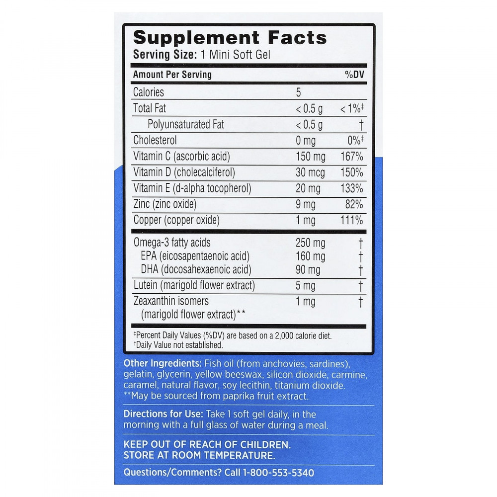 Помогает защищать здоровье глаз с помощью ключевых питательных веществ, которые, как было доказано исследованиями, питают защитный фильтр глаз.