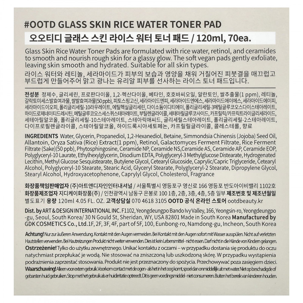 Подушечки с тоником и рисовой водой Glass Skin содержат рисовую воду, ретинол и керамиды, которые разглаживают и питают огрубевшую кожу, придавая ей ровное сияние. Мягкие веганские подушечки нежно отшелушивают, делая кожу гладкой и увлажненной.