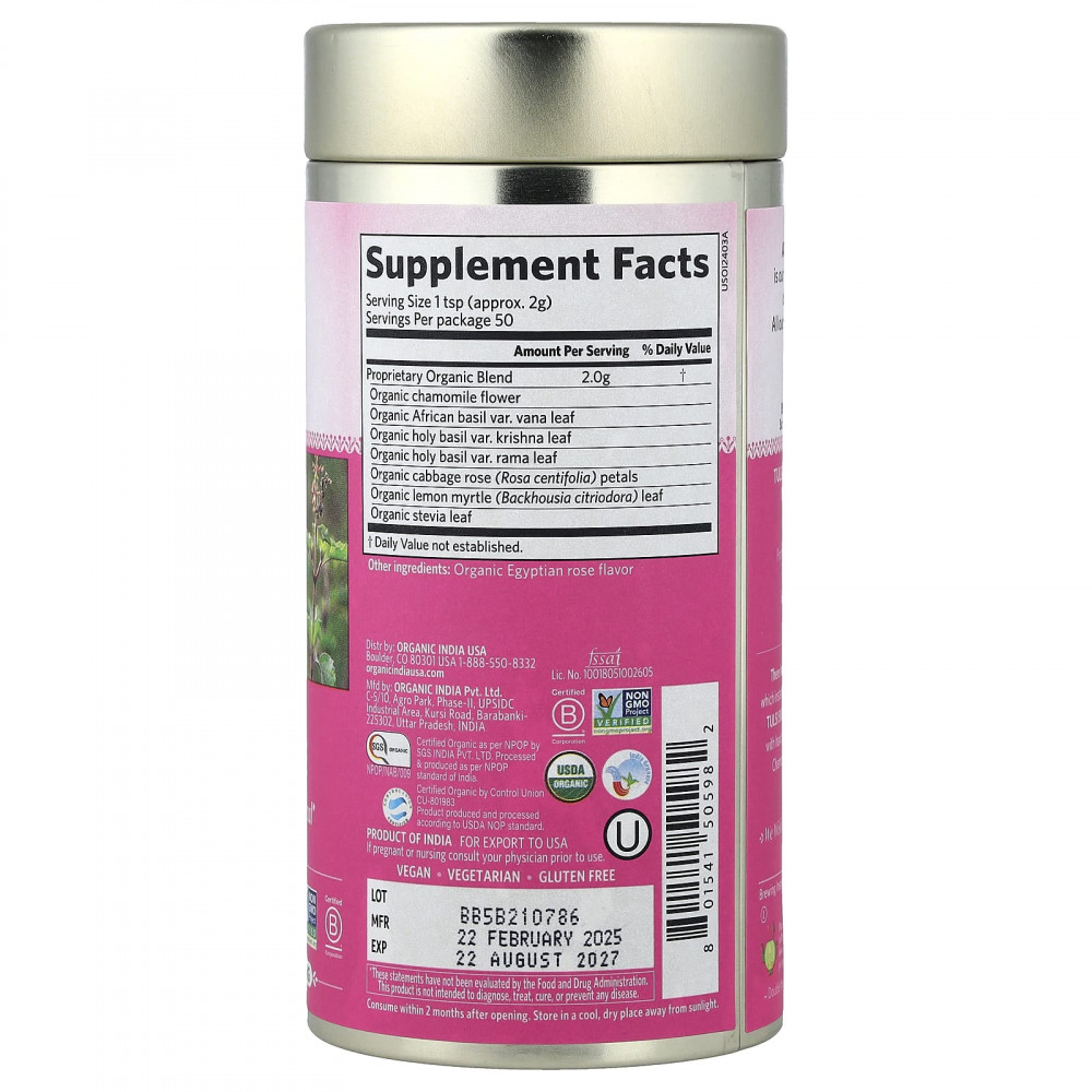 Нет ничего лучше экзотического аромата розы, который мгновенно дарит ощущение умиротворения и счастья. Сладкая роза тулси сочетает в себе насыщенные и ароматные листья тулси с собранными вручную местными лепестками розы, смешанные с нежной ромашкой и нежными специями, чтобы создать сенсационное и таинственное путешествия из времени.