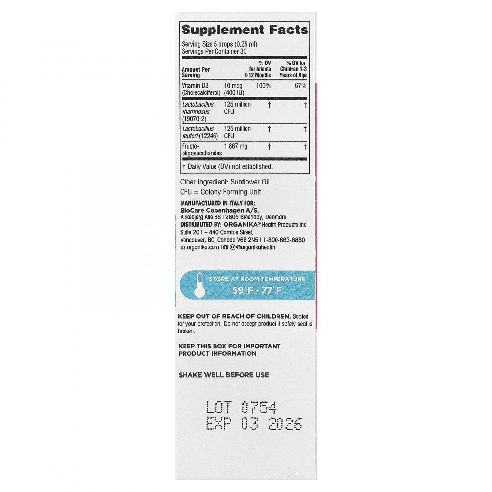 Младенцам и детям от 0 месяцев принимать по 5 капель (1 порция) 1 раз в день. Хорошо встряхните перед использованием. Не следует принимать более 5 капель в течение 24 часов. Можно добавлять в детскую смесь или давать непосредственно из пипетки.