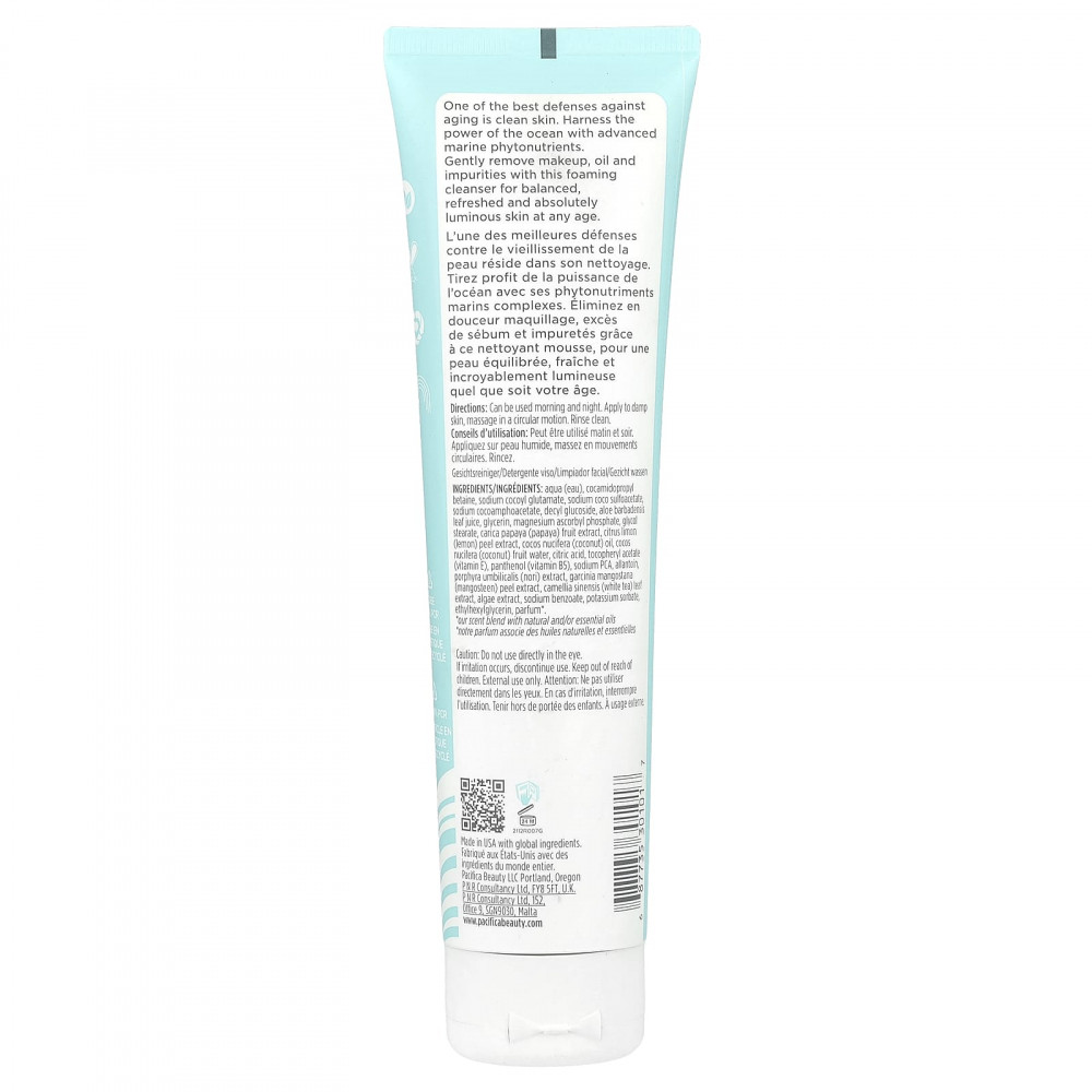 Одно из лучших средств защиты против старения — это чистота кожи. Используйте силу океана в виде насыщенных морских фитонутриентов. Эта пена мягко удаляет макияж, жир и загрязнения, не содержит сульфатов, очищает, балансирует, освежает кожу и придает ей сияние независимо от возраста.