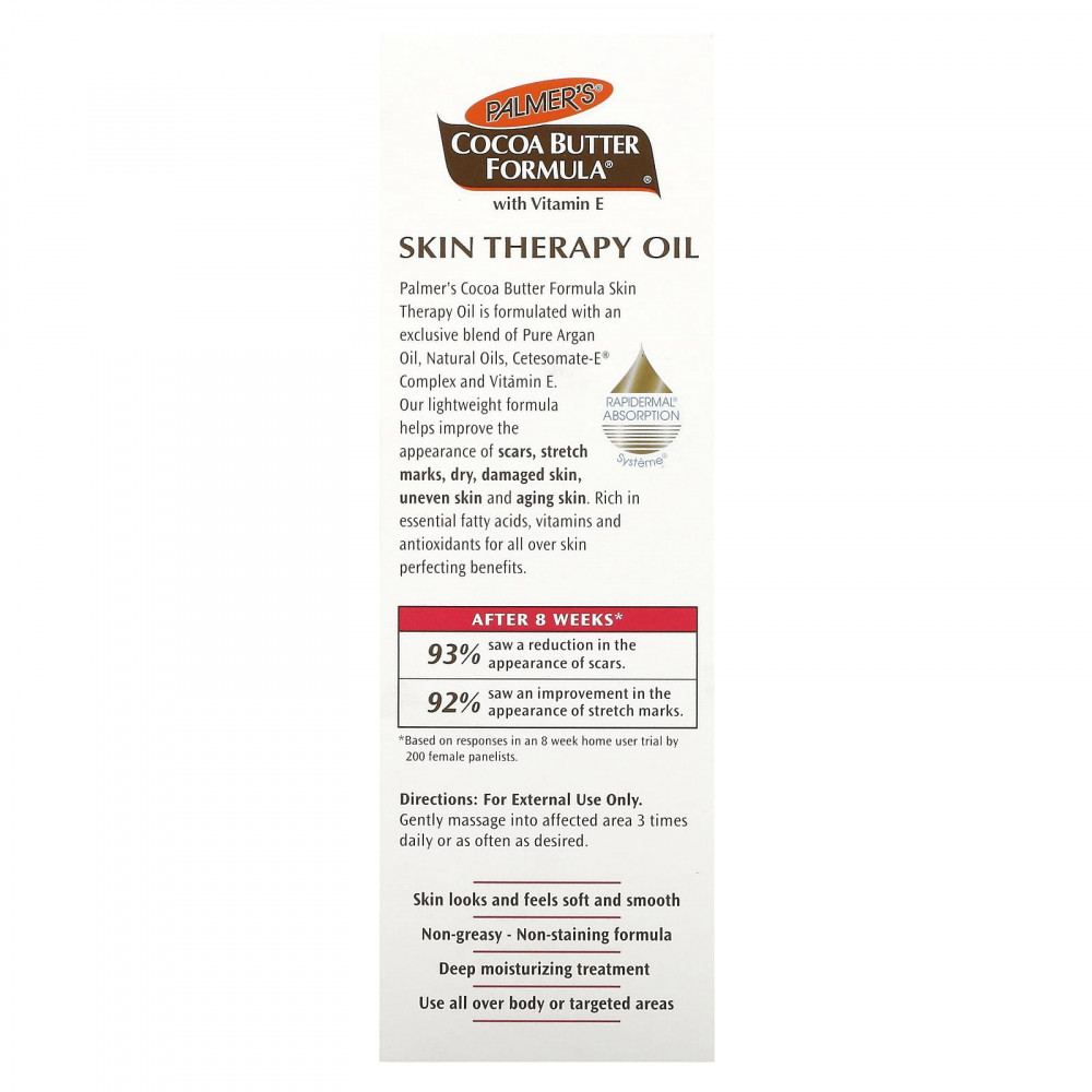 Масло для ухода за кожей с маслом какао от Palmer's разработано на основе эксклюзивной смеси чистого арганового масла, натуральных масел, комплекса цетесомата-Е и витамина Е. Наша легкая формула помогает улучшить внешний вид шрамов, растяжек, улучшить внешний вид сухой, поврежденной кожи, старение кожи. Богат незаменимыми кислотами, витаминами и антиоксидантами, которые улучшают состояние кожи.