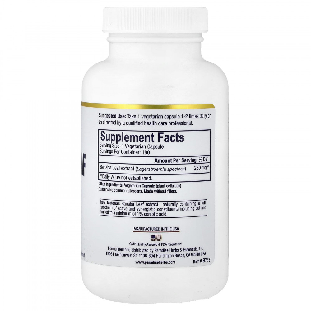 Сырье: экстракт листа банабы содержит полный спектр активных и обладающих синергическим действием компонентов, включая, помимо прочих, минимум 1 % коросолиевой кислоты)