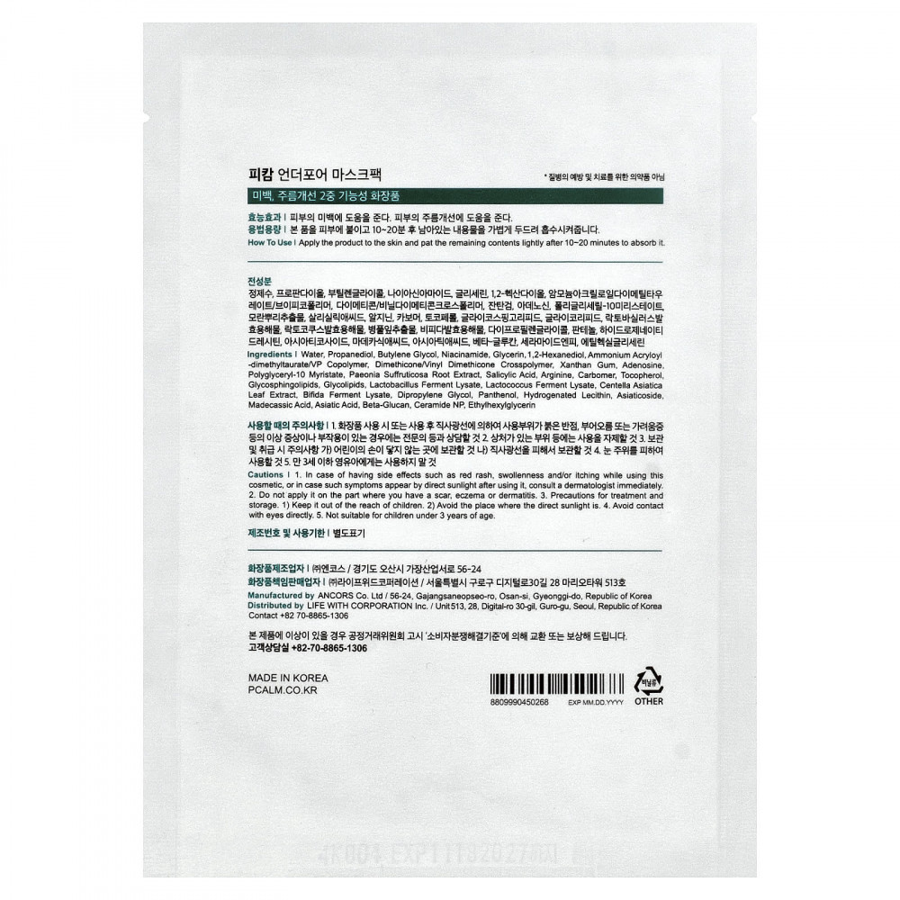 Вода, пропандиол, бутиленгликоль, никотинамид, глицерин, 1,2-гександиол, аммоний акрилоил-диметилтаурат/ВП сополимер, диметикон/винил диметикон кроссполимер, ксантановая камедь, аденозин, полиглицерил-10 миристат, экстракт корня пиона (Paeonia suffruticosa), салициловая кислота, аргинин, карбомер, токоферол, гликосфинголипиды, гликолипиды, лизат продукта ферментации лактобактерий, лизат ферментов лактококка, экстракт листьев готу колы (Centella asiatica), лизат ферментов бифидобактерий, дипропиленгликоль, пантенол, гидрогенизированный лецитин, азиатикозид мадекассовая кислота, азиатиковая кислота, бета-глюкан, керамид NP, этилгексилглицерин.
