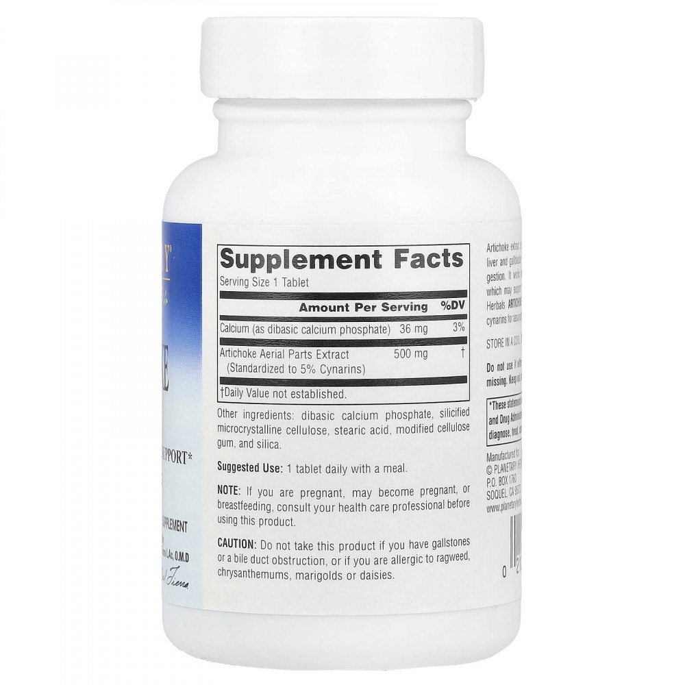 Экстракт артишока используется по всей Европе для поддержки работы печени и жёлчного пузыря, а также для облегчения последствий эпизодического несварения желудка. Частично он действует благодаря увеличению выработки жёлчи, что может способствовать ускоренному жировому обмену. Экстракт артишока Planetary Herbals стандартизирован до содержания 5% цинарина для гарантированной эффективности этого важного соединения.
