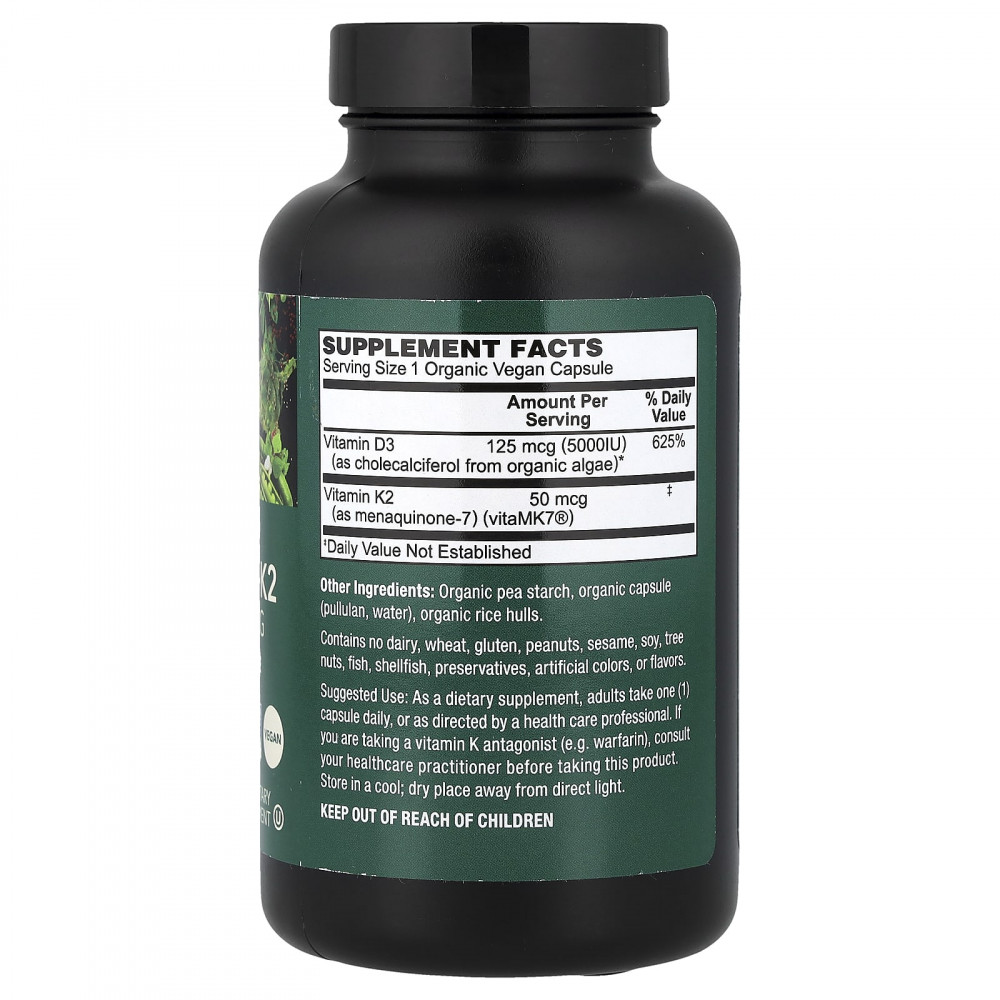 В сочетании витамины D3 и K2, обладающие высокой биодоступностью, поддерживают усвоение кальция для здоровья костей и регулируют содержание кальция в стенках артерий, выводя его из кровеносных сосудов. Недавние исследования показывают, что витамин D3 играет ключевую роль в работе иммунной системы.