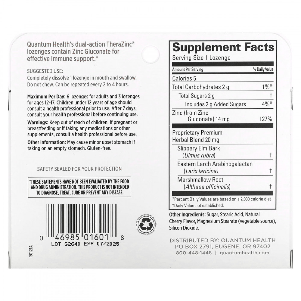 Пастилки двойного действия TheraZinc® от Quantum Health содержат глюконат цинка для эффективной поддержки иммунитета.