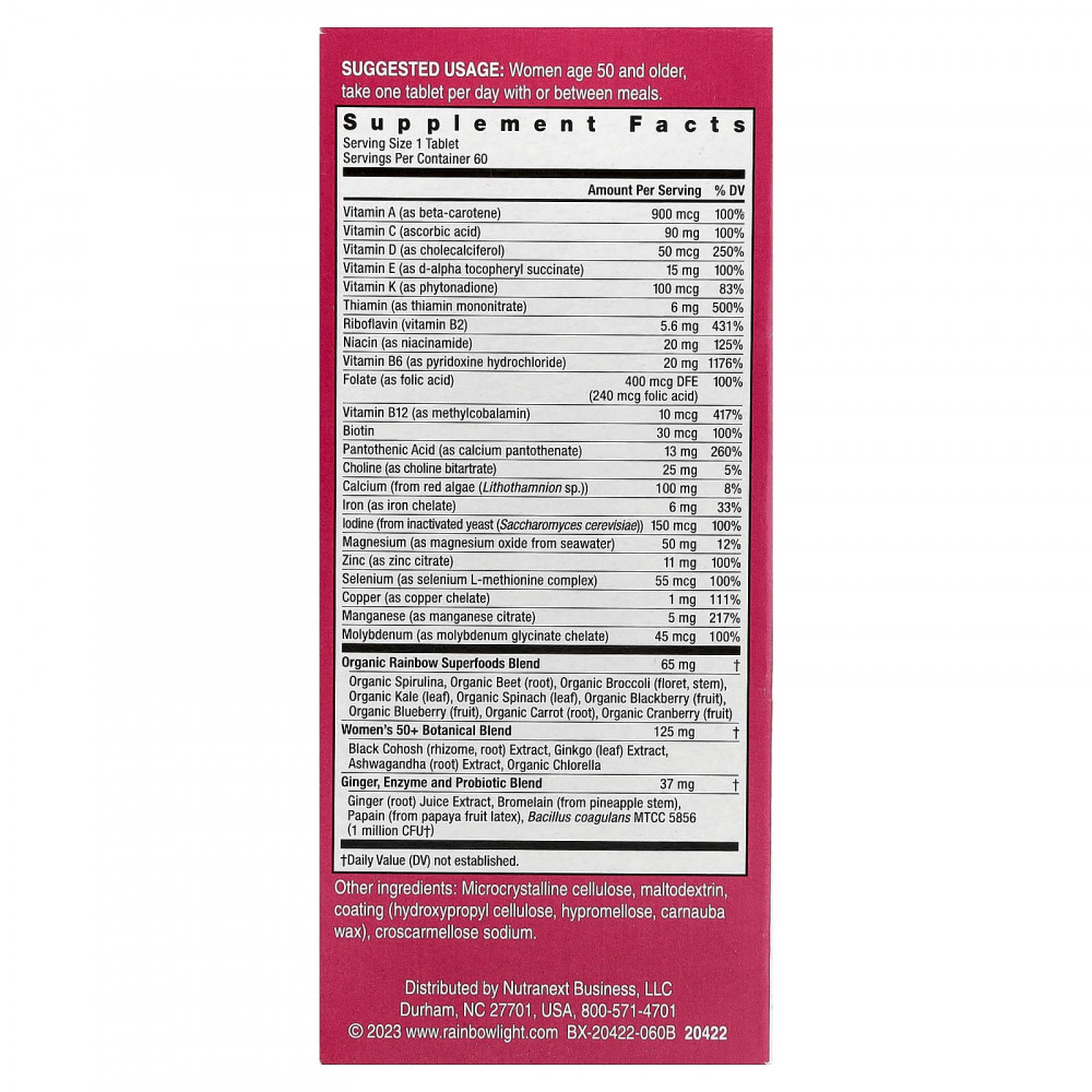 Мультивитамины для ежедневного приема для женщин старше 50 лет Rainbow Light™ содержат широкий спектр питательных веществ для поддержки активного образа жизни женщин в возрасте от 50 лет.