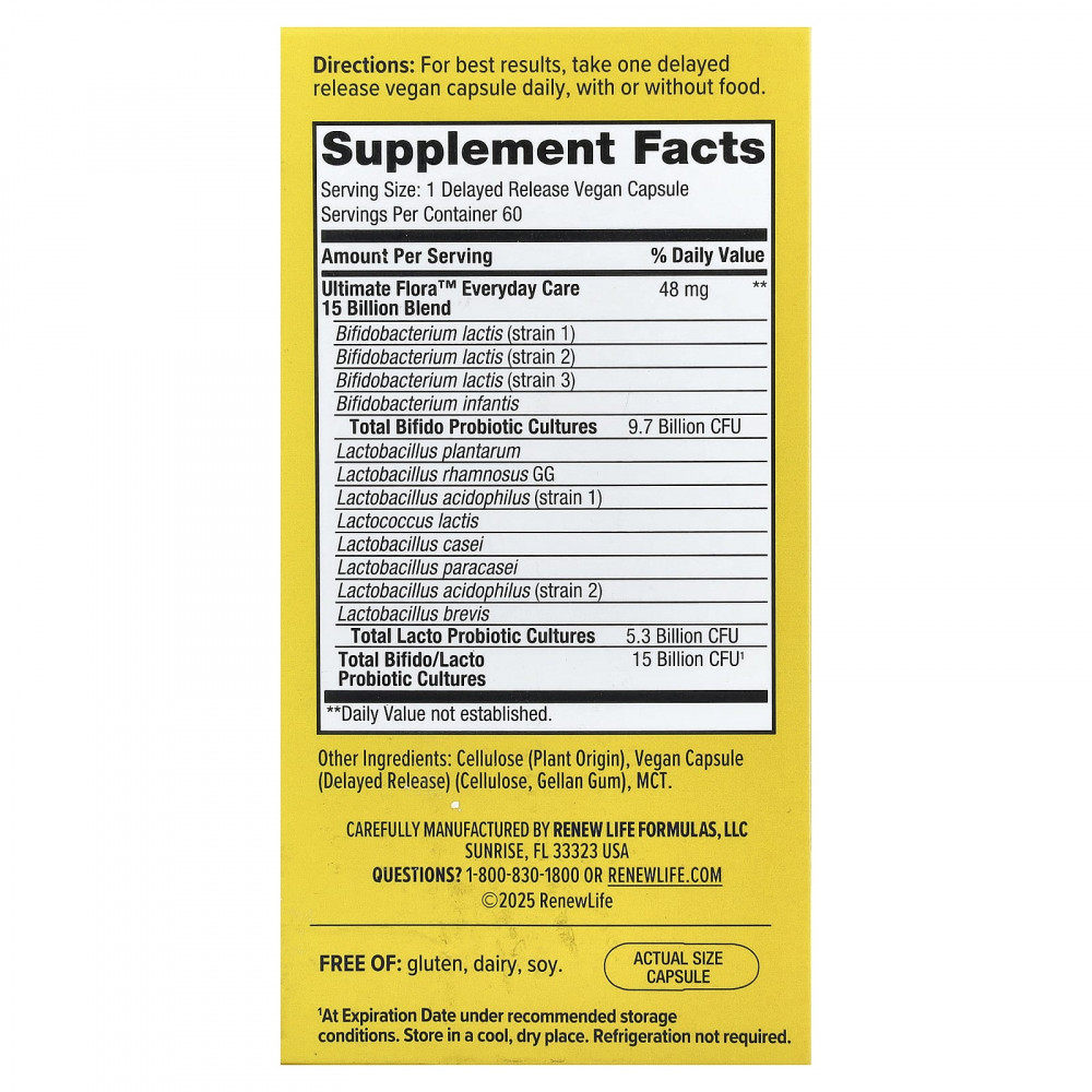 Ultimate Flora™ содержит 12 различных штаммов полезных пробиотиков (бифидобактерии, лактобактерии и лактококки). Некоторые другие бренды содержат только бифидо- или только лактобактерии. Поскольку кишечник населяют много разных штаммов пробиотиков, приём большего количества штаммов (бифидо- и лактобактерий) может быть эффективнее.