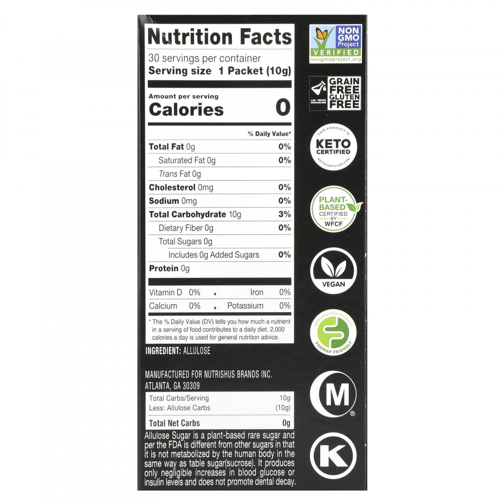 Аллюлоза — это сахар растительного происхождения, который, согласно FDA, отличается от других сахаров тем, что не метаболизируется в организме человека как столовый сахар. Он вызывает лишь незначительное повышение уровня глюкозы в крови или инсулина.