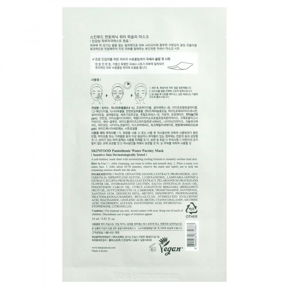 Мягкая тканевая маска с увлажняющей и охлаждающей формулой мгновенно успокаивает уставшую кожу.