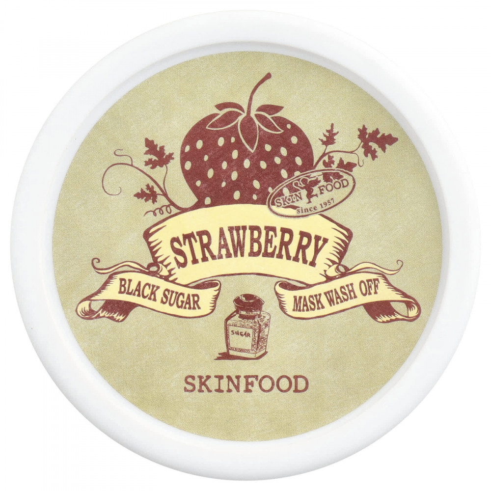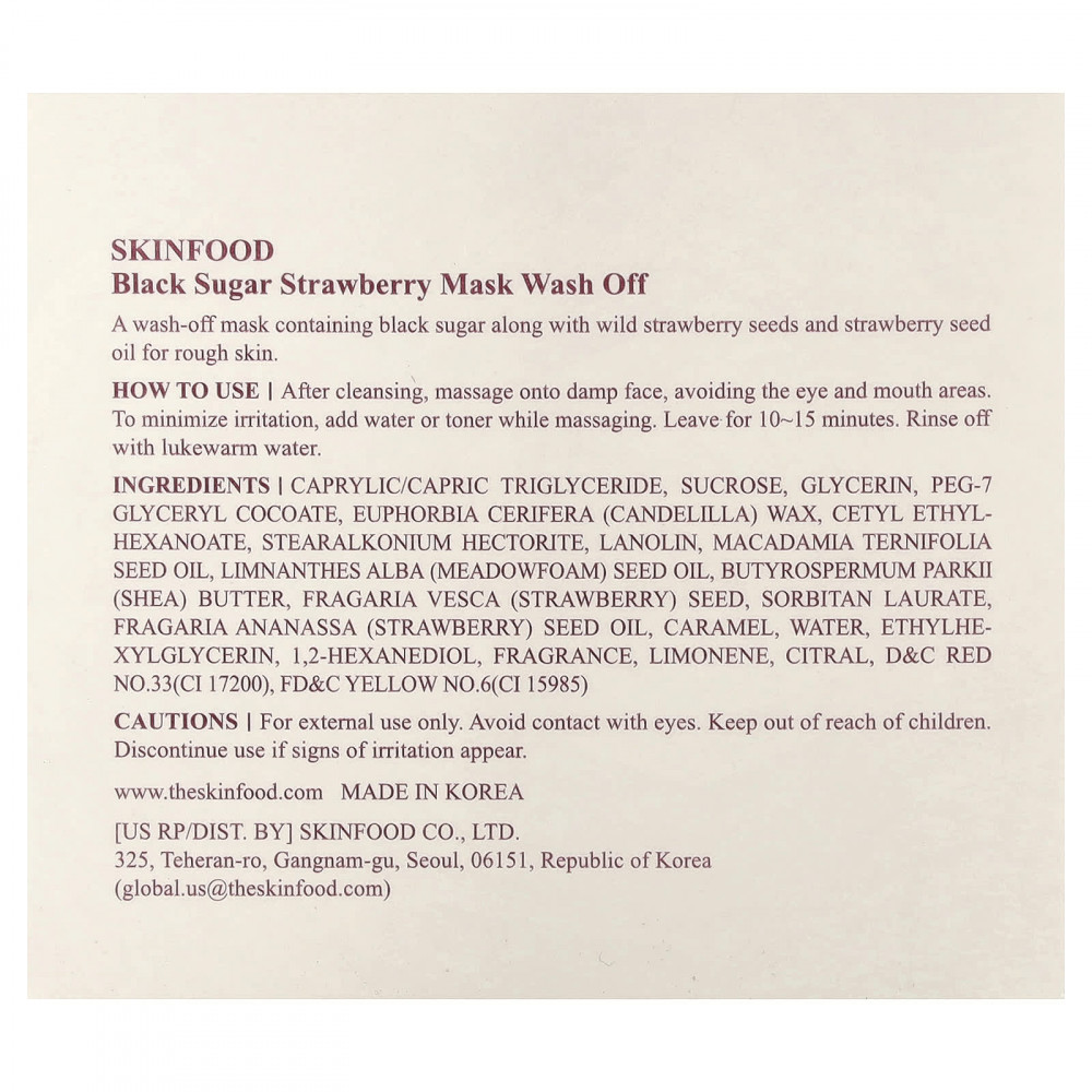 Смываемая маска для огрубевшей кожи содержит черный сахар, семена клубники и клубничное масло.