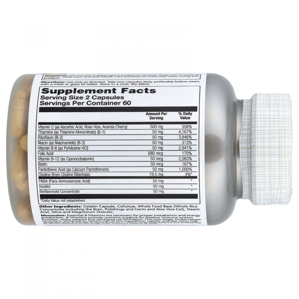 Незаменимые витамины группы B необходимы для правильного обмена веществ и выработки энергии. Витамины группы B обеспечивают питательную поддержку для здоровой работы иммунной системы, снятия стресса и формирования красных кровяных телец. Это средство с двухэтапным отсроченным высвобождением разработано так, чтобы первая половина ингредиентов высвобождалась быстро, а вторая половина - постепенно в течение 8 часов**. Это может увеличить доступность витаминов для организма в течение более длительного периода времени. времени