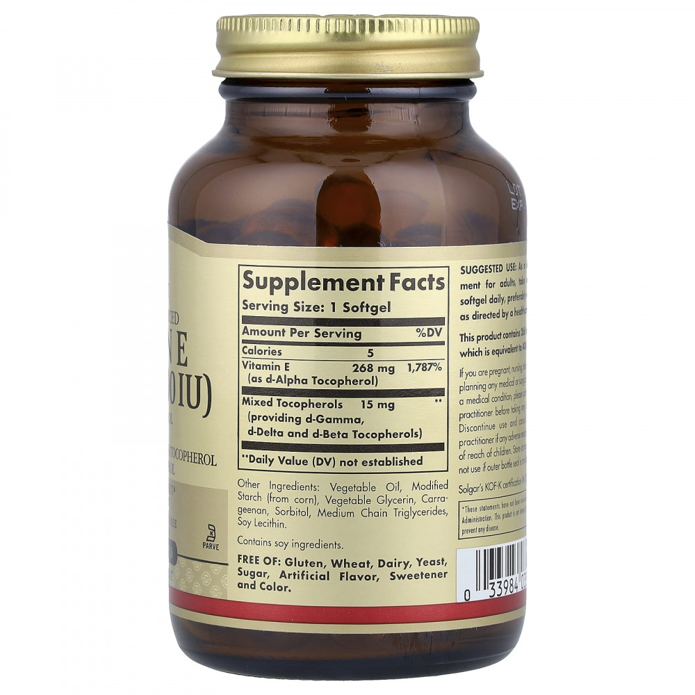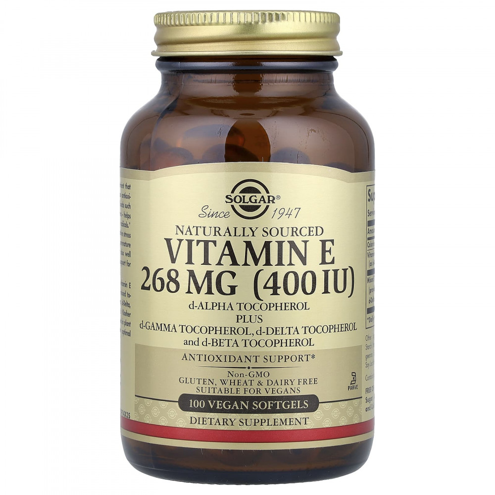 Формула Solgar предлагает витамин E в виде d-альфа-токоферола и смешанных токоферолов, включая d-гамма, d-дельта и d-бета-токоферолы. Это сертифицированный кошерный продукт, который подходит для веганов и выпускается в веганских капсулах на основе растительных масел для оптимального всасывания и усвоения.