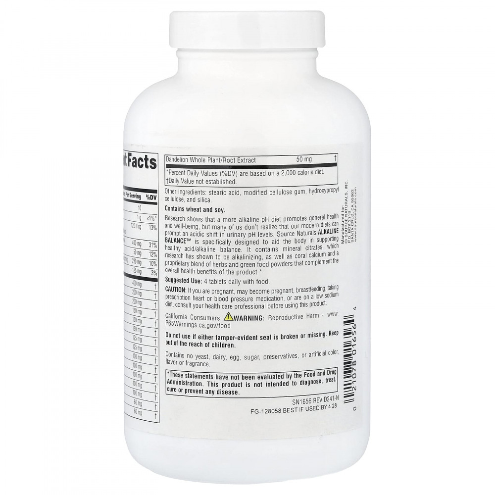 Исследования показывают, что диета с более щелочным уровнем pH способствует общему здоровью и хорошему самочувствию, но многие из нас не понимают, что современный рацион может спровоцировать изменение уровня pH мочи в кислую сторону. Сыворотка Alkaline Balance™ от Source Naturals специально разработана для того, чтобы помочь организму поддерживать здоровый кислотно-щелочной баланс. Он содержит минеральные цитраты, которые, как показали исследования, обладают подщелачивающим действием, а также коралловый кальций и запатентованную смесь трав и порошков из зелени, которые дополняют общую пользу продукта для здоровья.
