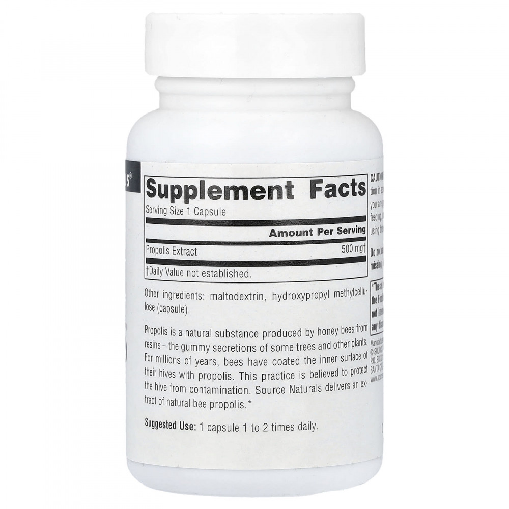 Прополис — это натуральное вещество, получаемое медоносными пчелами из смолы — мармеладных выделений некоторых деревьев и других растений. В течение миллионов лет пчелы покрывают внутреннюю поверхность своих ульев прополисом. Считается, что этот метод защищает улей от загрязнения. Source Naturals содержит экстракт натурального пчелиного прополиса.