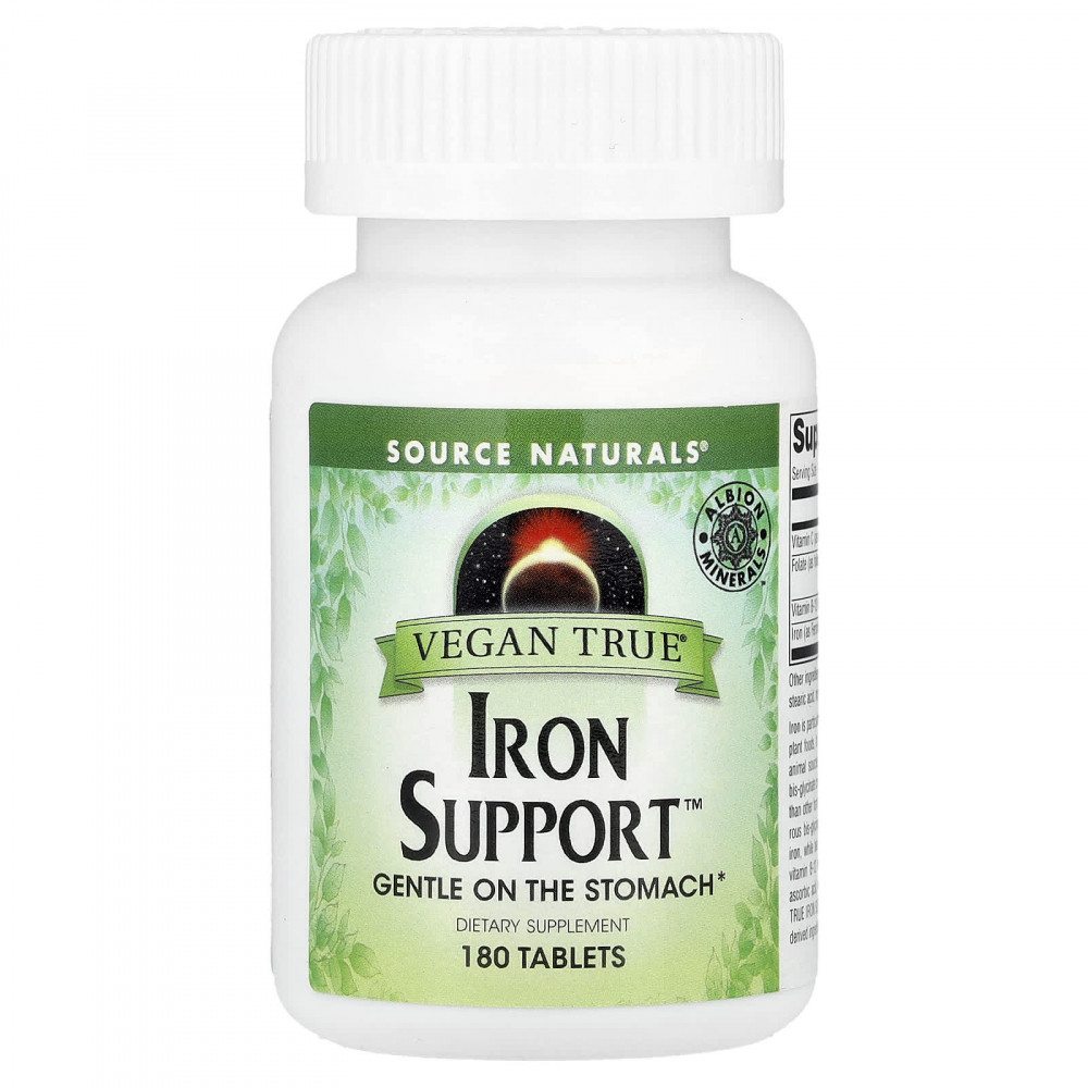 Железо особенно важно для веганов. Хотя железо можно получать из растительной пищи, оно не так эффективно усваивается организмом, как железо из животных источников. Vegan True® Iron Support™ содержит хелат бисглицината железа, который, как показывают исследования, может быть более биодоступным, чем другие формы железа, например сульфат железа. Исследования показывают, что хелат бисглицината железа помогает повысить и поддерживать уровень железа в крови, при этом мягко воздействуя на желудок и кишечник. Для дополнительной поддержки включены фолиевая кислота и витамин B12, а также аскорбиновая кислота, которая помогает улучшить усвояемость железа. Добавка Vegan True Iron Support не содержит продуктов или ингредиентов животного происхождения.