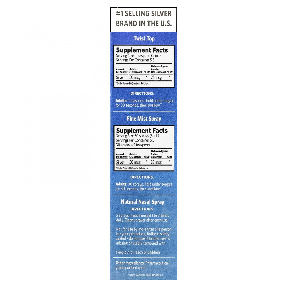 Всего 2 ингредиента: 99,999% чистого серебра и очищенная вода фармацевтической степени чистоты. И упаковано только во флаконы из янтарного стекла, чтобы сохранить его таким же чистым и мощным, как в день создания †.