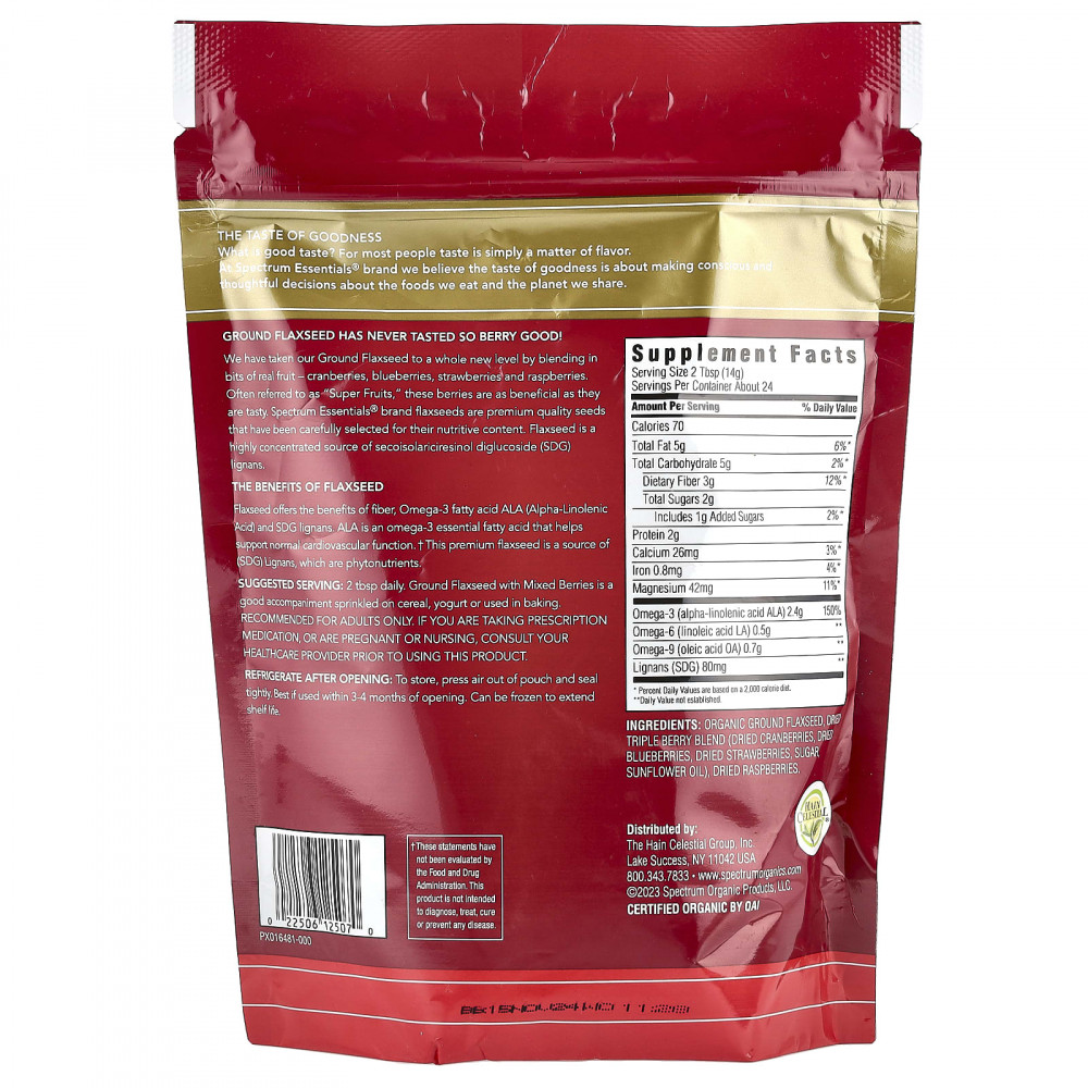 Мы подняли наш самый популярный продукт из молотых семян льна на совершенно новый уровень, добавив кусочки настоящих фруктов: голубики, клубники, клюквы, малины и бузины. Эти ягоды, которые часто называют «суперфруктами», особенно хорошо известны благодаря содержанию антиоксидантных полифенолов и укрепляющим иммунитет свойствам, что делает их такими же полезными и вкусными. Семена льна под брендом Spectrum Essentials® - это семена премиального качества, которые были тщательно отобраны на предмет их питательности. Льняное семя является высококонцентрированным источником лигнанов секоизоларицирезинола диглюкозида (СДГ). Количество лигнанов SDG может варьироваться от 0,7% до 1,9% от веса семян в зависимости от сезонных колебаний условий выращивания. Только бренд Spectrum Essentials® использует запатентованный процесс измельчения, при котором семена мелко нарезаются, а не измельчаются, тем самым сводя к минимуму потерю ценных питательных веществ в результате окисления. Нарезанные семена сразу же упаковываются в этот легкий защитный пакет и герметично закрываются для обеспечения оптимальных питательных свойств и свежести продукта.