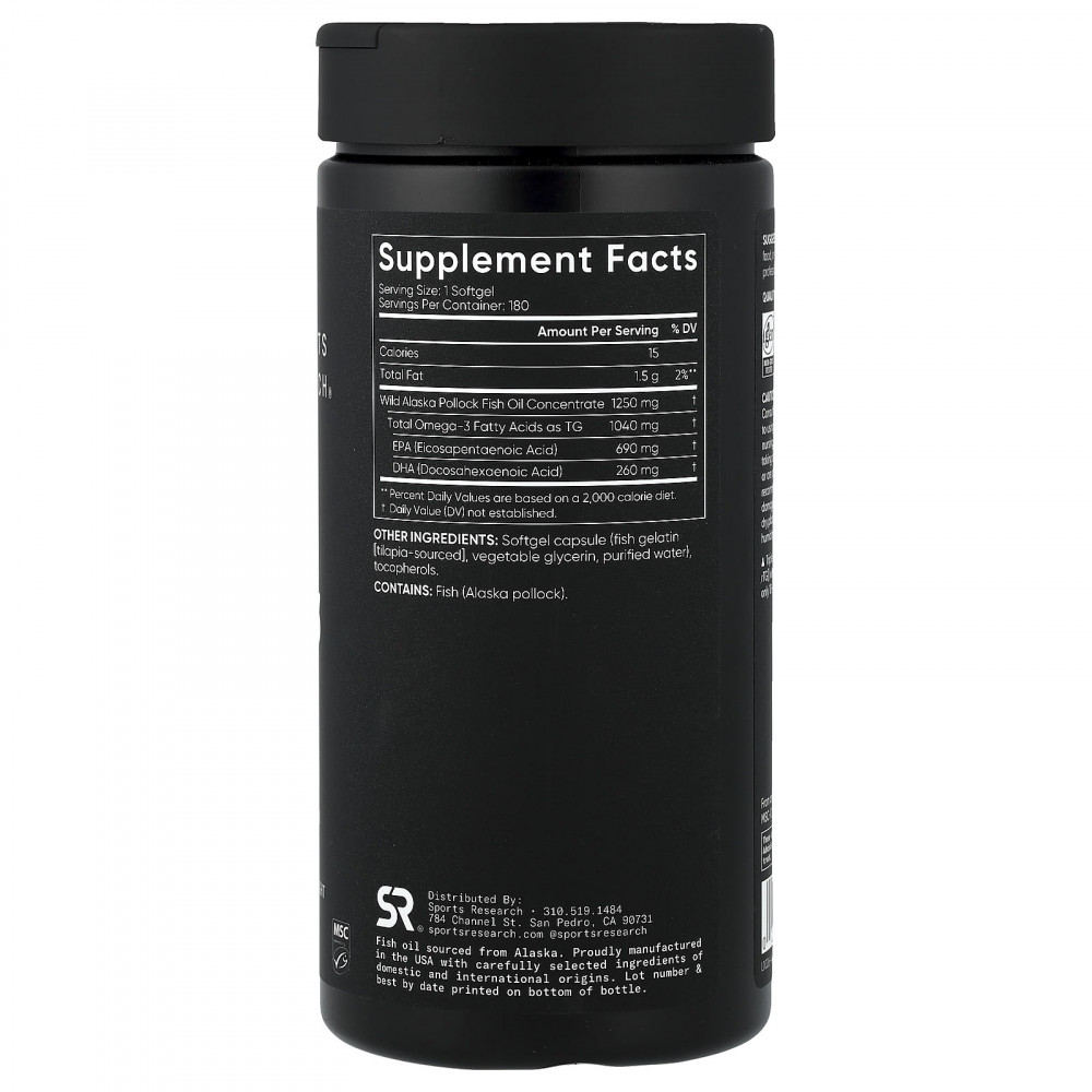Рыбий жир с омега-3 отлично подходит для поддержки здоровья сердца и иммунной системы, поскольку содержит незаменимые жирные кислоты омега-3. Хотя в море может быть много рыбы, не все виды одинаково полезны. Наша добавка Sports Research® с рыбьим жиром омега-3 тройной силы производится из дикой аляскинской сайды и использует 10-этапный процесс очистки для получения ультраконцентрированной дозы без характерного рыбного послевкусия.