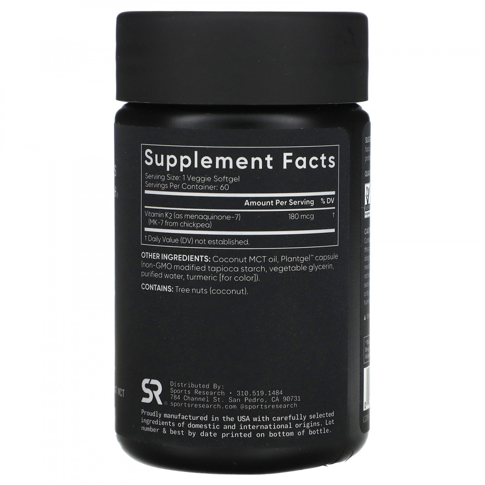 Витамин K2 от Sports Research® имеет превосходную, полностью веганскую формулу без ГМО, полученную из нута с помощью запатентованного процесса ферментации. Всего одна капсула в день может обеспечить крепкие кости.