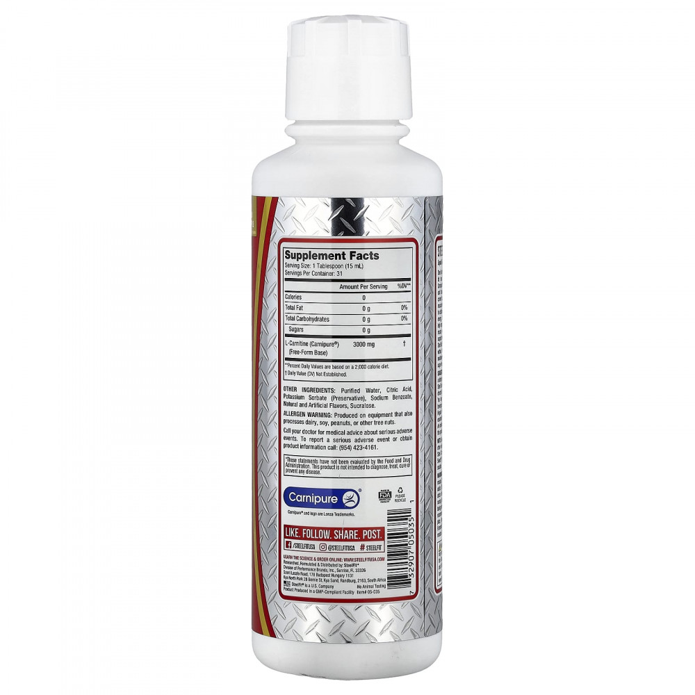 Steel Burn™ — это добавка для снижения жира премиального качества без стимуляторов, содержащая 3 грамма L-карнитина Carnipure®. L-карнитин — это аминокислота, которая играет важную роль в преобразовании жирных кислот для использования в качестве топлива, способствующего мышечной энергии. Жидкий L-карнитин Steel Burn™ не только способствует сжиганию жира и увеличивает энергию, но и может помочь повысить выносливость, способствовать росту мышц, снизить мышечную усталость и поддержать восстановление после тренировки.