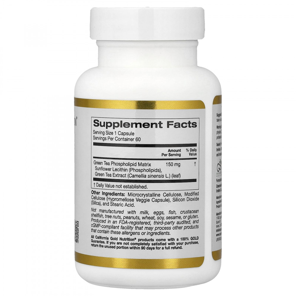 California Gold Nutrition®Green Tea Phytosome™содержит запатентованные фитосомы зеленого чая (Green Tea Phytosome™), Greenselect®, которые, как было доказано, поддерживают метаболизм и обеспечивают антиоксидантные свойства.