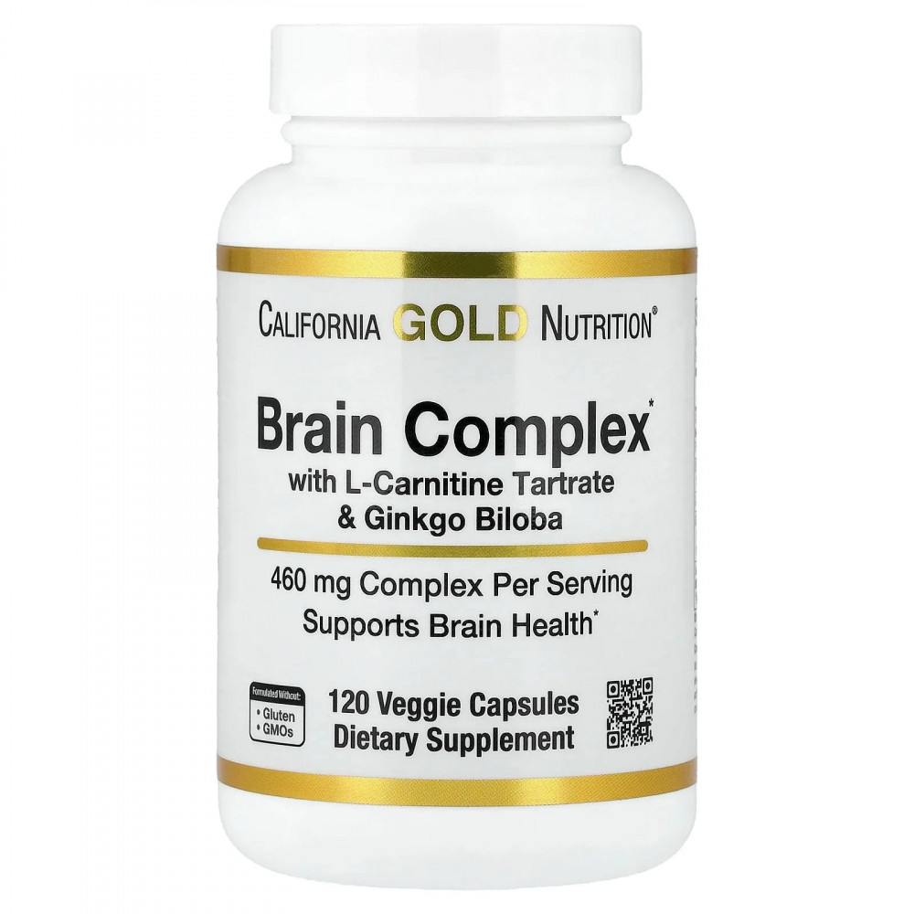 Комплекс для здоровья мозга с L-карнитином и гинкго билоба от California Gold Nutrition® создан для поддержки здоровья мозга и когнитивных функций благодаря комплексной смеси нутрицевтиков и гинкго*.