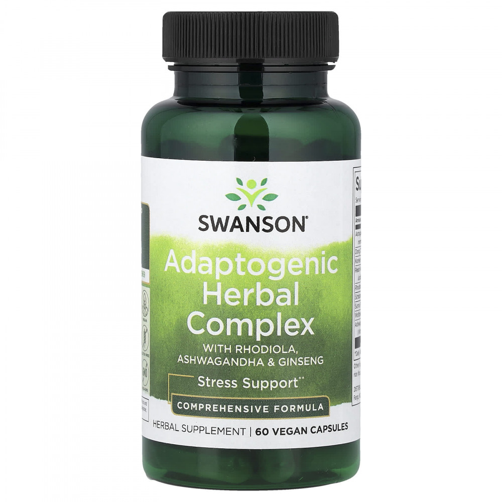 Преодолевайте последствия стресса и восстанавливайте баланс в организме с помощью эффективной смеси адаптогенных трав в составе адаптогенного травяного комплекса Swanson с родиолой, ашвагандой и женьшенем. Эта уникальная формула сочетает в себе девять наиболее эффективных и проверенных временем растительных адаптогенов, собранных по всему миру. Они защищают и балансируют различные системы органов, нормализуют функции организма, подверженные стрессу, и способствуют оптимальной жизненной силе.