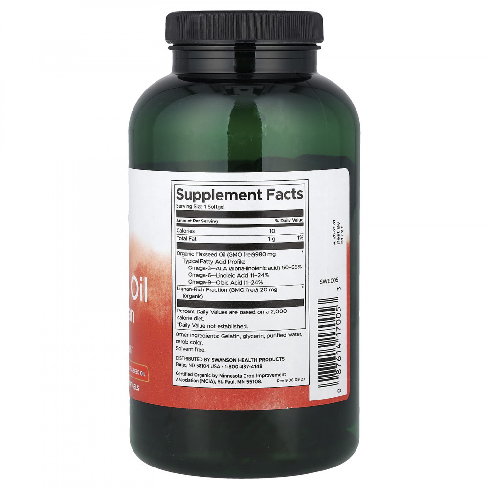 Добавка с льняным маслом с высоким содержанием лигнана от Swanson OmegaTru является полезным источником альфа-линоленовой кислоты (омега-3) и линолевой кислоты (омега-6), а также содержит концентрированные лигнаны, уникальные питательные вещества из льна, которые обладают особыми преимуществами для здоровья сердечно-сосудистой системы и гормональной поддержки.