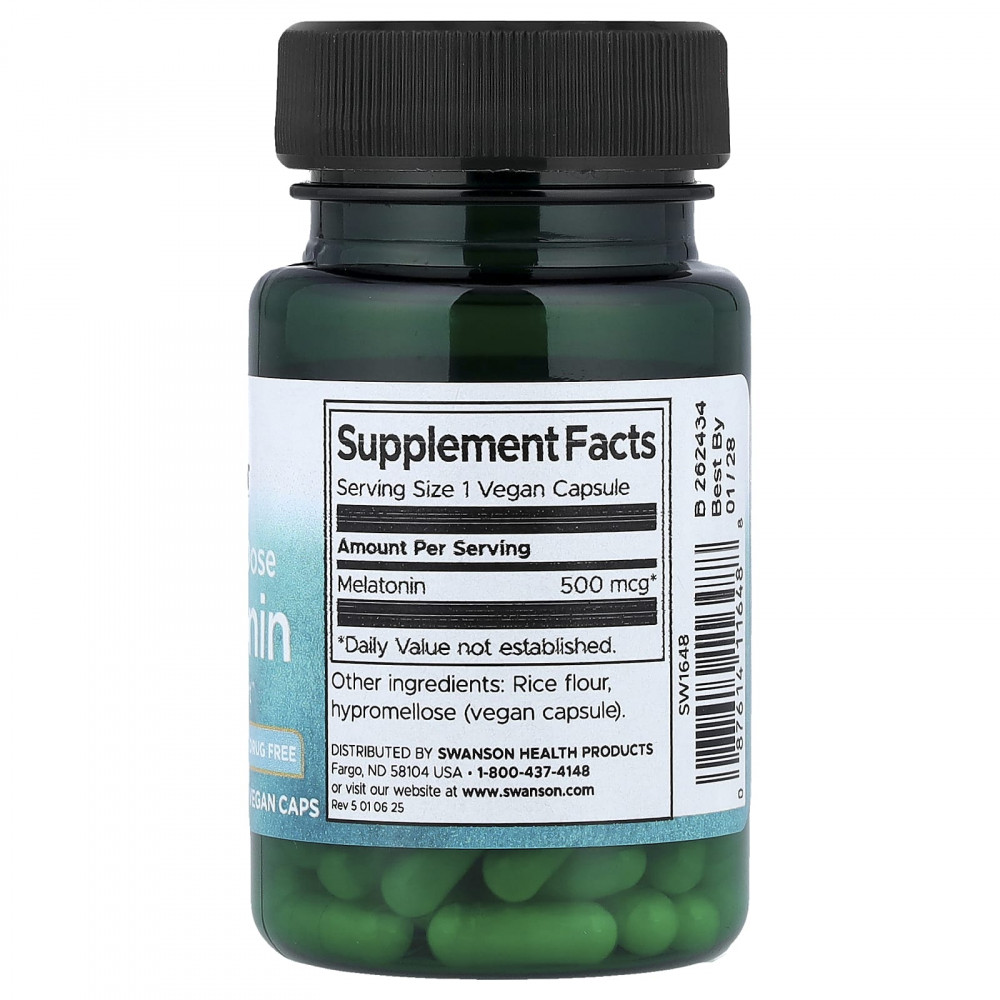 Мелатонин — гормон, в первую очередь отвечающий за регуляцию циклов сна и бодрствования, и он играет важную роль в способности спокойного, восстанавливающего сна, необходимого для здоровья тела и разума. Вот почему многие люди обращаются с мелатонином в качестве пищевой добавки для поддержания регулярного режима сна. Но мелатонин — мощное вещество, и некоторым людям даже немного — это все, что им нужно, чтобы слегка изменить режим сна. Наш мелатонин с низкой эффективностью от Swanson содержит 500 мкг мелатонина в каждой вегетарианской капсуле, что позволяет более точно вводить дозу, чтобы вы могли получить то количество, которое подходит именно вам.