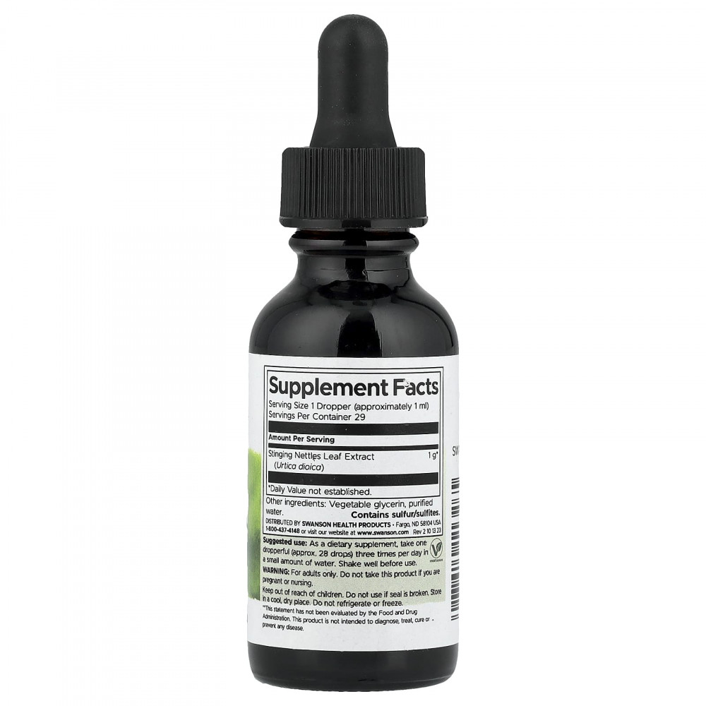 Листья крапивы двудомной использовались в древних культурах для укрепления здоровья. Жидкий экстракт листьев крапивы двудомной от Swanson — это полезная травяная добавка для здоровья и хорошего самочувствия. Это современный жидкий экстракт холодного отжима, не содержащий сахара и спирта.