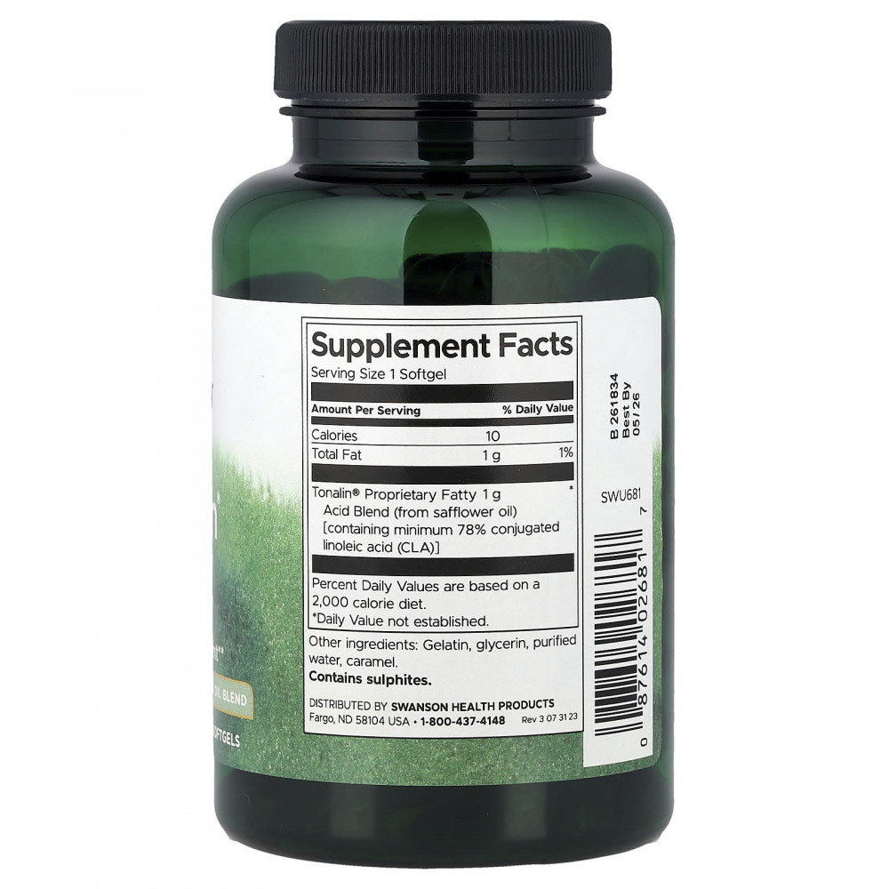 Употребление слишком большого количества жиров вредит здоровью. Как и воздержание от него. Некоторые жиры жизненно важны для здоровья сердца и мозга. Конъюгированная линолевая кислота (КЛК) — это незаменимая жирная кислота, которая способствует развитию сухой мышечной массы и поддерживает здоровую коррекцию веса. Swanson Tonalin CLA содержит 1 грамм смеси жирных кислот, содержащий запатентованный тоналин, который получен из 100% сафлорового масла холодного отжима. КЛК поддерживает развитие сухой мышечной массы и может помочь в достижении ваших целей по коррекции веса.