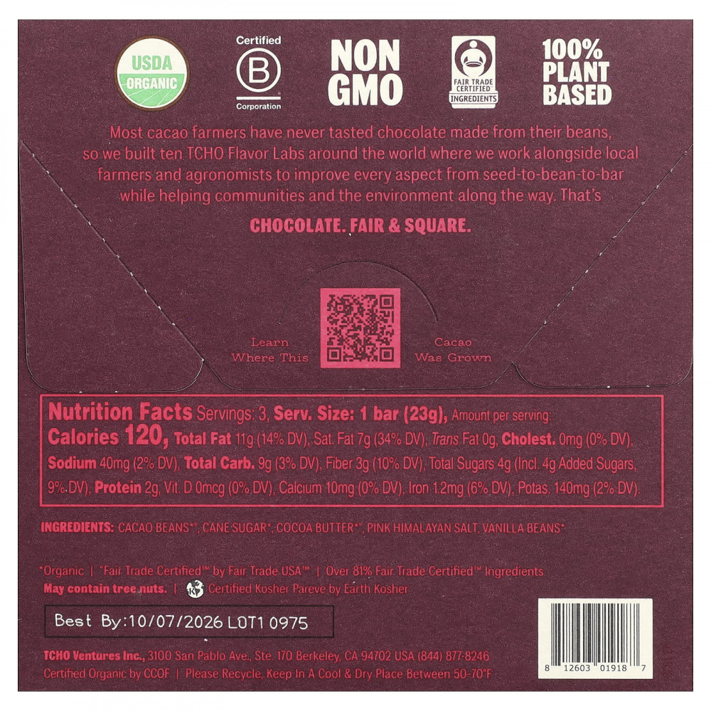 Большинство фермеров, которые выращивают какао-бобы, никогда не пробовали шоколад, изготовленный из их какао-бобов. Поэтому мы открыли десять лабораторий TCHO Flavor Labs по всему миру, где сотрудничаем с местными фермерами и агрономами, чтобы улучшить каждый аспект — от семян до бобов и батончика, — помогая сообществам и окружающей среде. в пути. Это шоколад. Сертификат Fair & Square.