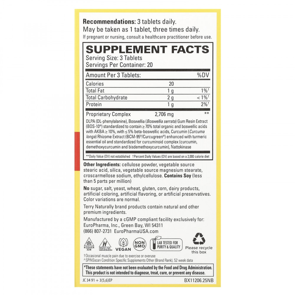 Клинически изученный куркумин Bcm-95® с турмеронами и босвеллией BOS-10®, DLPA и наттокиназой.