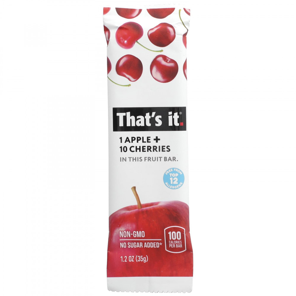 Содержит две порции фруктов, в виде 10 ягод вишни, 1 яблока и ничего больше. Ингредиенты еще никогда не были такими простыми и чистыми. Все просто. Фруктовые батончики — это полностью натуральные растительные продукты, которые не содержат глютена, ГМО, аллергенов и добавленного сахара.