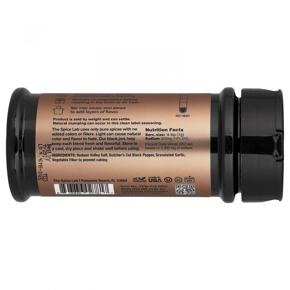 Соль из долины Гудзон, измельченный черный перец, гранулированный чеснок, растительная клетчатка для предотвращения слеживания.