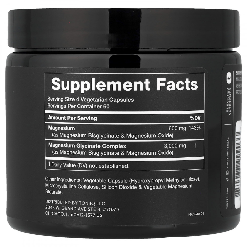 Высокая степень очистки и биодоступности — магний Toniiq содержит 3000 мг самого чистого порошка глицината магния, выращенного с использованием специализированного процесса экстракции, чтобы обеспечить концентрированную дозу 600 мг элементарного магния в каждой порции (другие продукты с магнием содержат 150 мг или меньше) .