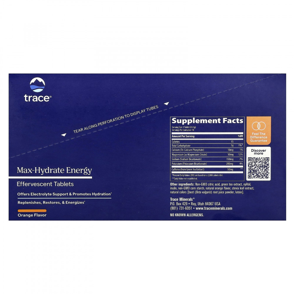 Max-Hydrate Energy - это удобная шипучая таблетка с великолепным вкусом, которую можно добавлять в воду для обеспечения элитного уровня электролитов и поддержки мышечной выносливости и выносливости. Он содержит 50 мг натурального кофеина из экстракта зеленого чая для поддержания уровня энергии. Max-Hydrate также доступен в наших формулах для повышения выносливости и иммунитета, чтобы удовлетворить все ваши потребности в жидкости.