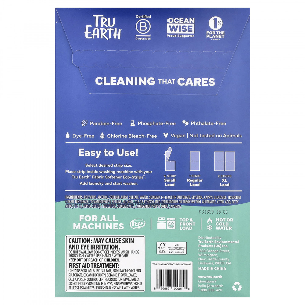 Простое в использовании! Выберите желаемый размер полоски. Поместите полоску в стиральную машину с кондиционерами для белья Eco-Strips® от Tru Earth®. Добавьте белье и запустите стирку.