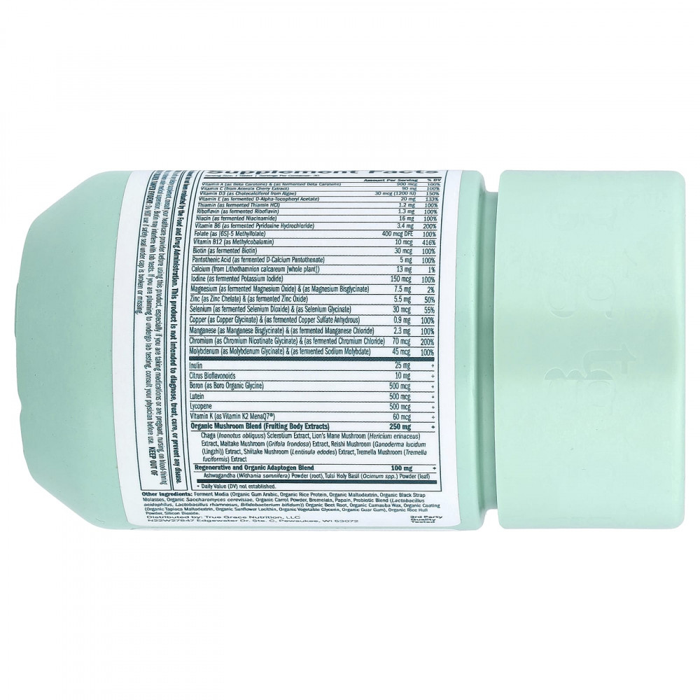 Мультивитамины на основе цельных продуктов True Grace разработаны с использованием ферментированных витаминов, хелатных и ферментированных минералов, органических лекарственных грибов, а также нашей смеси регенеративного и органического адаптогена.