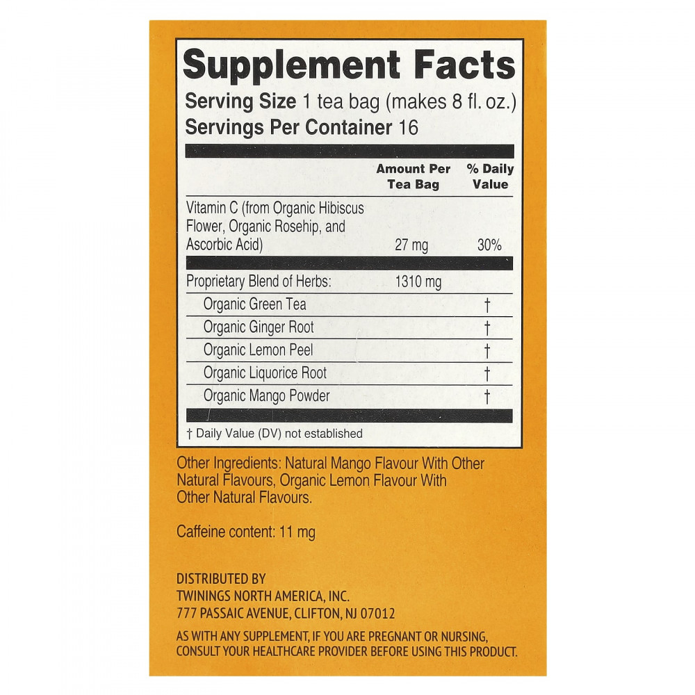 Мы объединили сладкий вкус манго и нежную теплоту имбиря с зеленым чаем, чтобы создать чашку, которая поднимает настроение каждый день. Эта смесь поддерживает здоровье иммунной системы благодаря добавлению витамина С, который не добавляет вкуса, но придает полезные свойства вашей чашке.