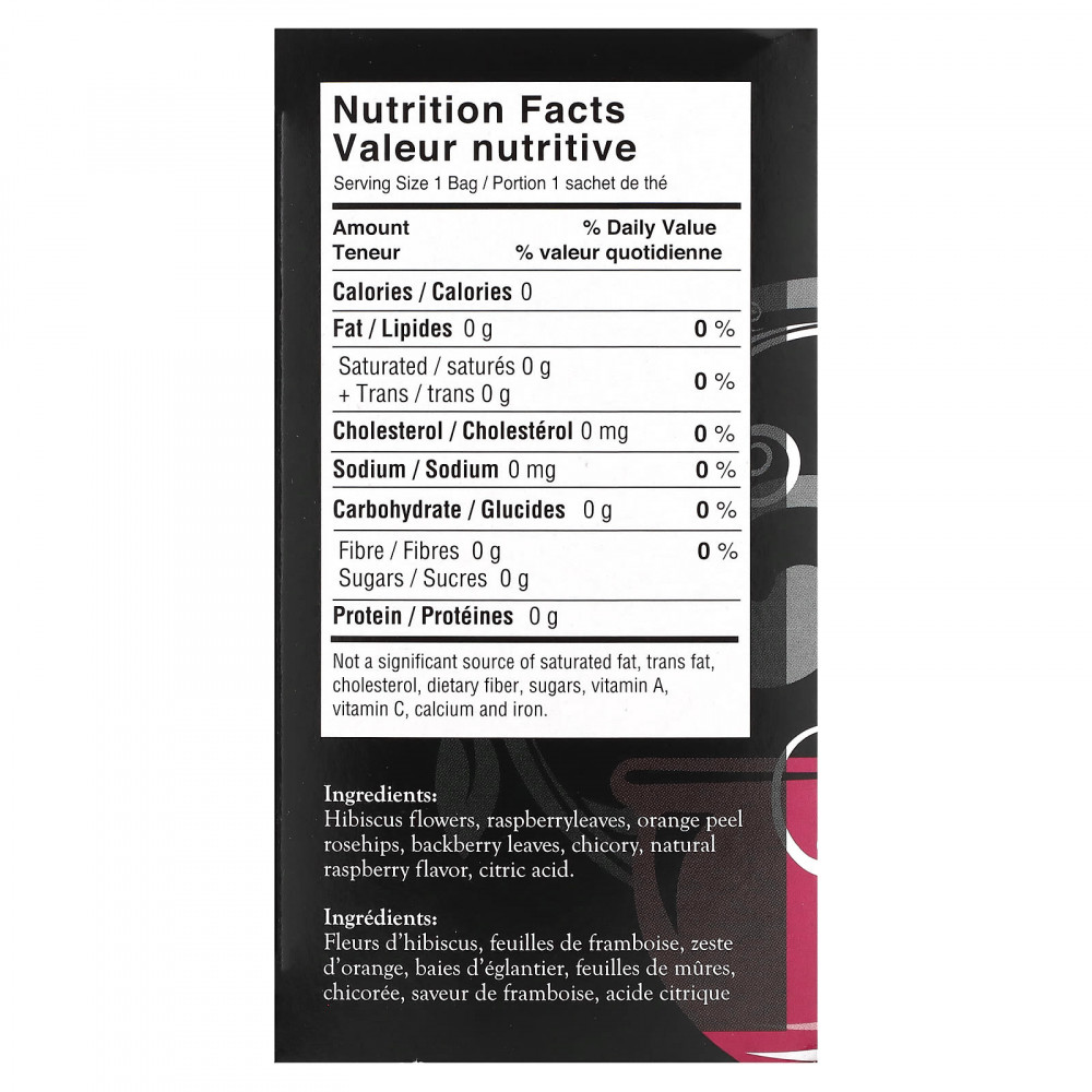 Цветки гибискуса, листья малины, цедра апельсина, листья ежевики, цикорий, натуральный ароматизатор «Малина», лимонная кислота.